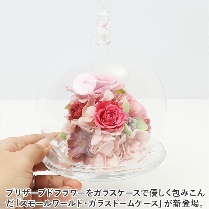 ・透明なガラスの中に広がる、季節感あふれる小さな世界。プリザーブドフラワーをガラスケースで優しく包みこんだ「スモールワールド・ガラスドームケース」が新登場。