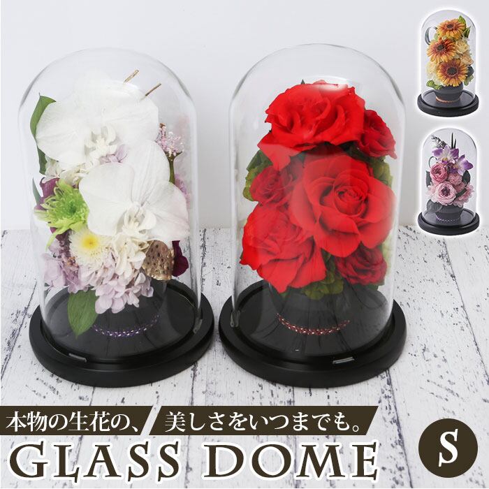 プリザーブドフラワー ガラスドーム S 通販 お花 アレンジ ガラスドームアレンジメント ガラス グラス お供え メモリアル ナチュラル 自然 贈り物 ギフト プレゼント 母の日 誕生日 記念日 シンプル ゴージャス 重厚 インテリア フラワーアレンジメント フラワーギフト 花