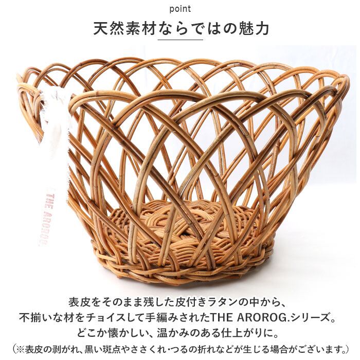 ・表皮をそのまま残した皮付きラタンの中から、不揃いな材をチョイスして手編みされたTHE AROROG.シリーズ。どこか懐かしい、温かみのある仕上がりに。(※表皮の剥がれ、黒い斑点やささくれ・つるの折れなどが生じる場合がございます。)