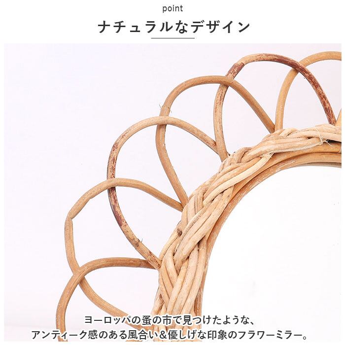 ・ヨーロッパの蚤の市で見つけたような、アンティーク感のある風合い&優しげな印象のフラワーミラー。