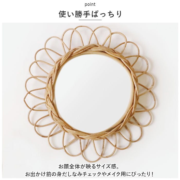 ・お顔全体が映るサイズ感。お出かけ前の身だしなみチェックやメイク用にぴったり!