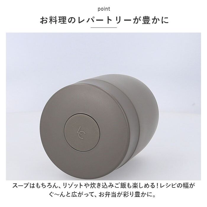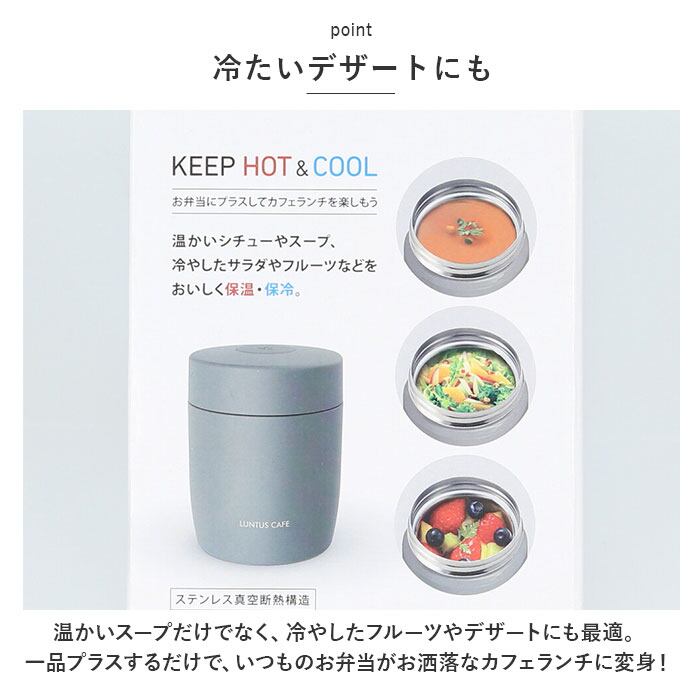・ステンレス真空断熱構造で、温かいシチューやスープ、冷やしたサラダやフルーツもランチタイムまで美味しさキープ。