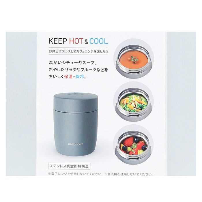 ・ステンレス真空断熱構造で、温かいシチューやスープ、冷やしたサラダやフルーツもランチタイムまで美味しさキープ。