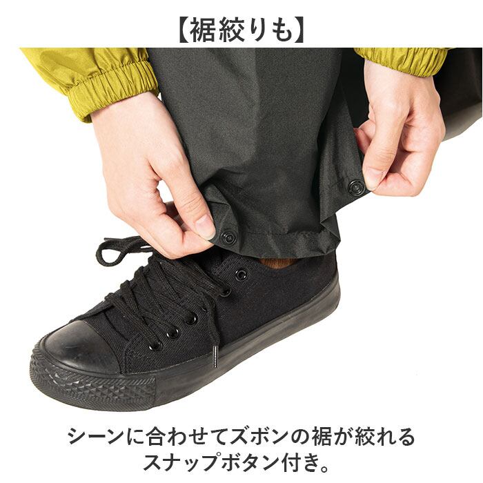 ・雨の日のお出かけだけでなく、作業着やスポーツにも活躍するレインセットアップ。