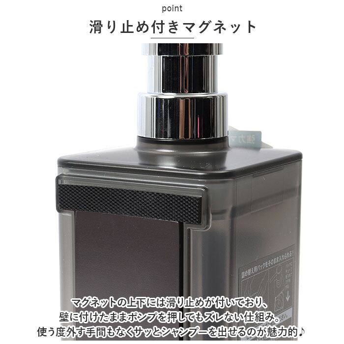 ・マグネットの上下には滑り止めが付いており、壁に付けたままポンプを押してもズレない仕組み。