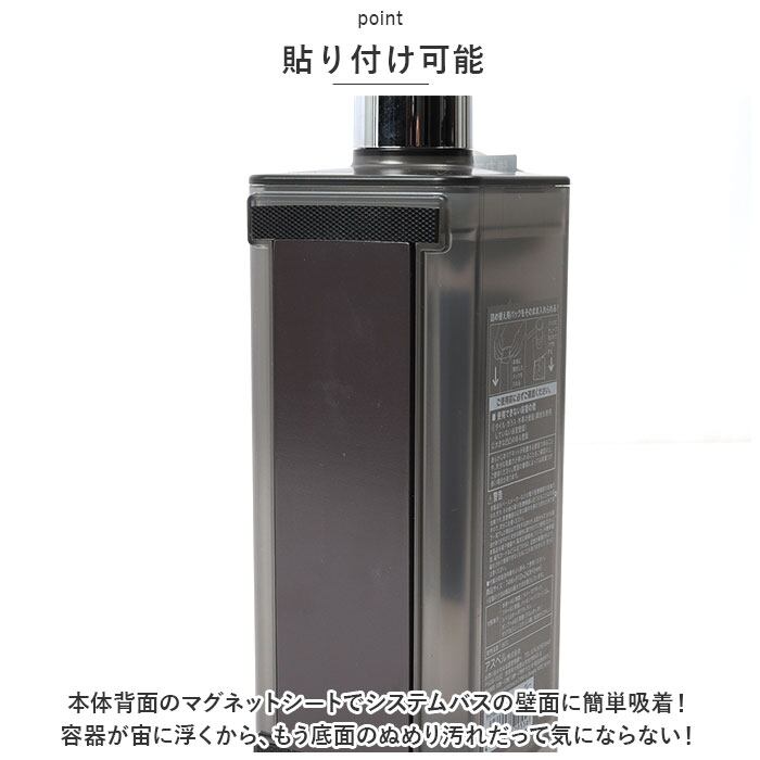 ・本体背面のマグネットシートでシステムバスの壁面に簡単吸着!容器が宙に浮くから、もう底面のぬめり汚れだって気にならない!
