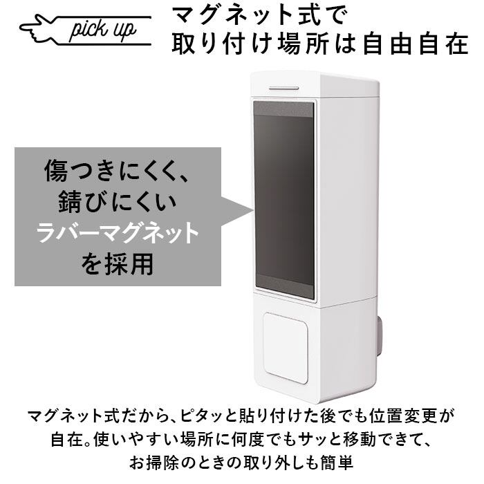 ・マグネット式だから、ピタッと貼り付けた後でも位置変更が自在。使いやすい場所に何度でもサッと移動できて、お掃除のときの取り外しも簡単。
