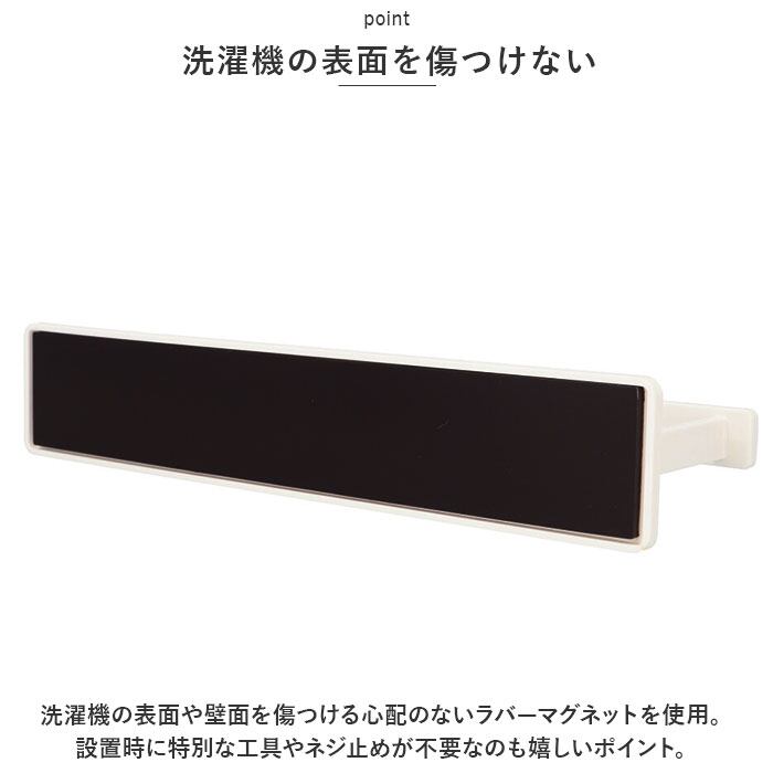 ・洗濯機の表面や壁面を傷つける心配のないラバーマグネットを使用。設置時に特別な工具やネジ止めが不要なのも嬉しいポイント。