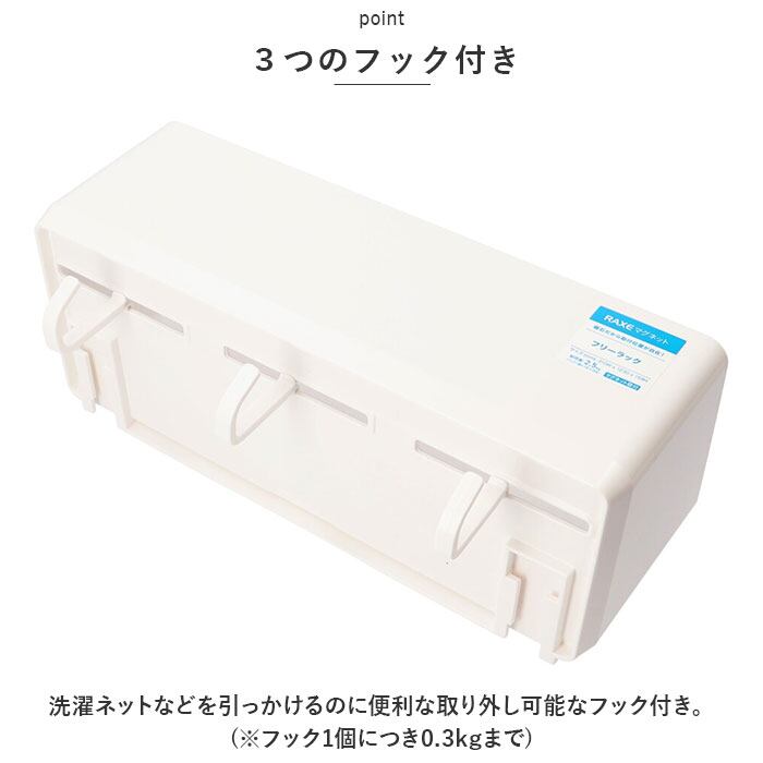 ・洗濯ネットなどを引っかけるのに便利な取り外し可能なフック付き。(※フック1個につき0.3kgまで)