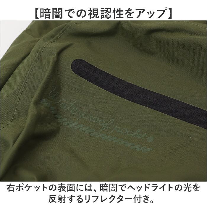 ・右ポケットの表面には、暗闇でヘッドライトの光を反射するリフレクター付き。