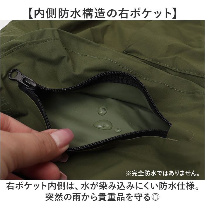 ・右ポケット内側は、水が染み込みにくい防水仕様。突然の雨から貴重品を守る◎