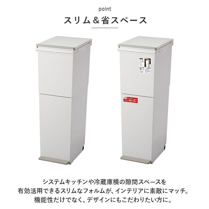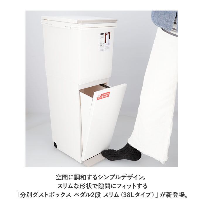 ・空間に調和するシンプルデザイン。スリムな形状で隙間にフィットする「分別ダストボックス ペダル2段 スリム(38Lタイプ)」が新登場。