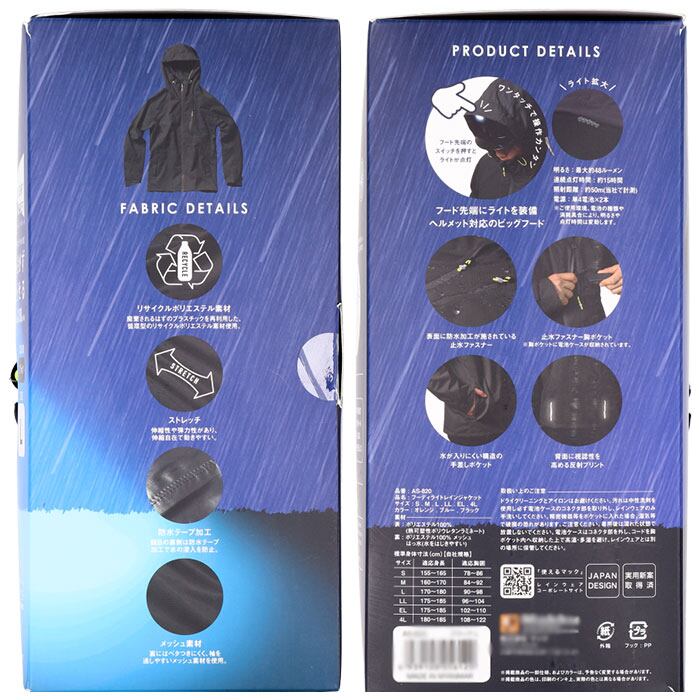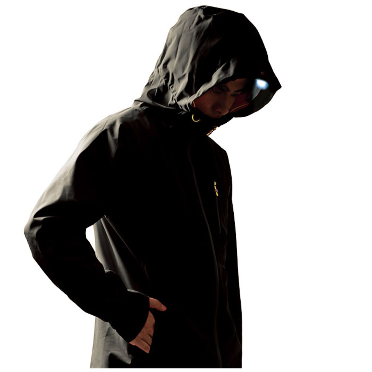 ・ヘッドライトとレインコートを一体型に!ワンタッチでライトが点灯、手元を照らす「フーディライトレインジャケット」が登場。