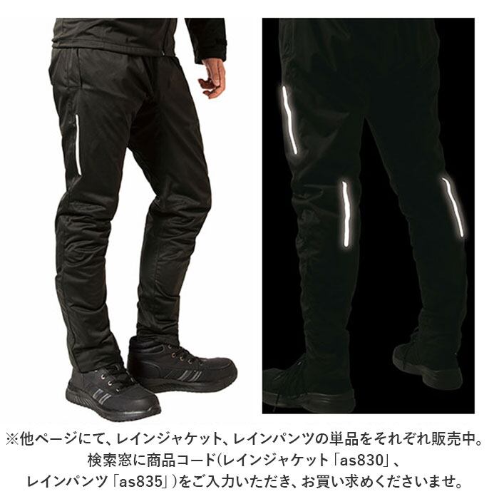 ・検索窓に商品コード(レインジャケット「as830」、レインパンツ「as835」)をご入力いただき、お買い求めくださいませ。