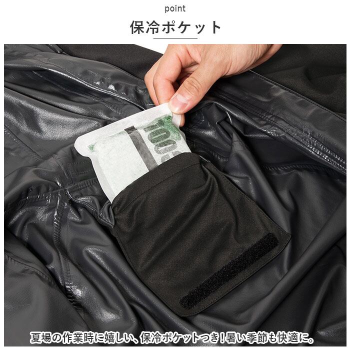 ・レインジャケットには、夏場の作業時に嬉しい、保冷ポケットつき!暑い季節も快適に。