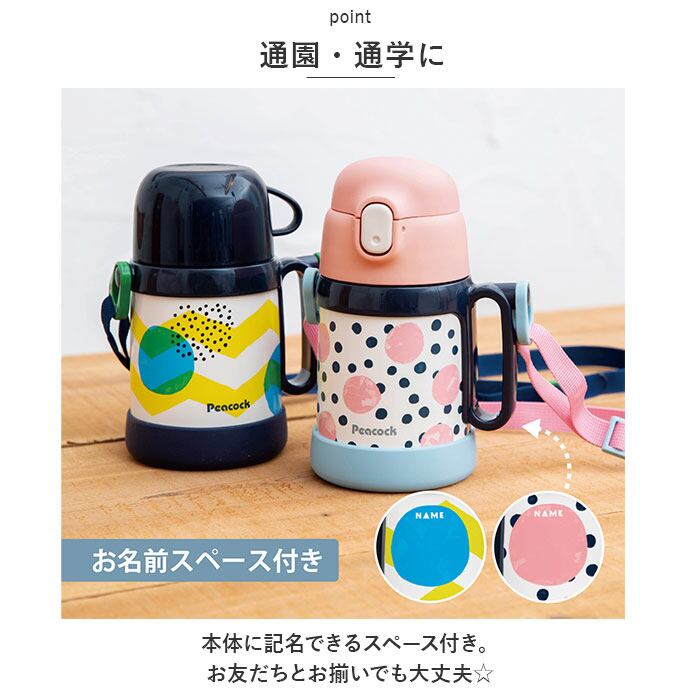 ・ストロー&コップ付き。お子さまの年齢やシーンに合わせて飲み方をチョイス!