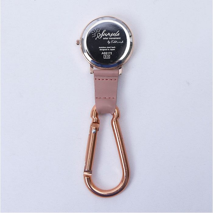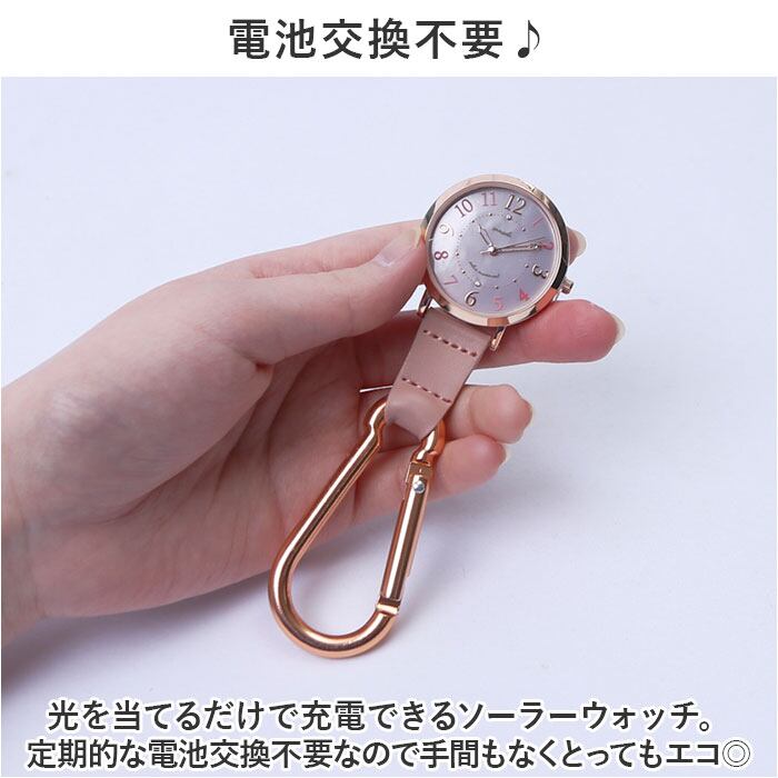 ・カラビナで時計を逆さまにぶら下げて使用するのがポイント。バッグやベルトに取り付けたまま、外さずにそのまま時間が確認できて便利!