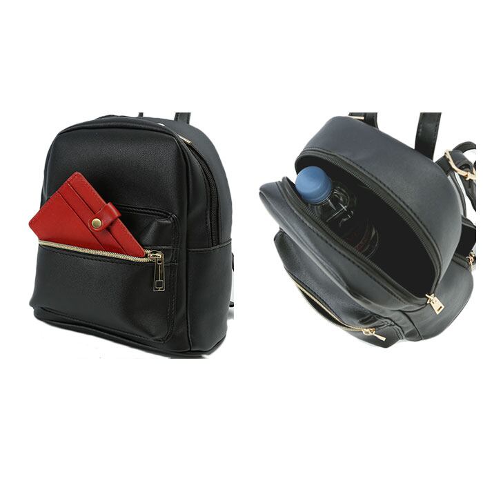 リュック 小さめ レディース 軽量 通販 大人 かわいい ミニリュック 中学生 小学生 おしゃれ 黒 ブラック 通勤 サブバッグ シンプル 無地 フェイクレザー 合皮 背面ファスナー シンプルミニリュック 101536