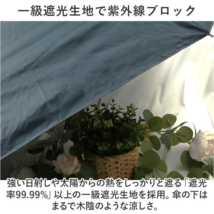 ・強い日射しや太陽からの熱をしっかりと遮る「遮光率99.99%」以上の一級遮光生地を採用。傘の下はまるで木陰のような涼しさ。