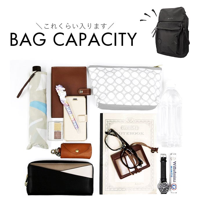 ・お出かけの荷物をひとまとめにできる、容量約17Lサイズ。適度なマチ設計で、人混みでも邪魔になりにくい!
