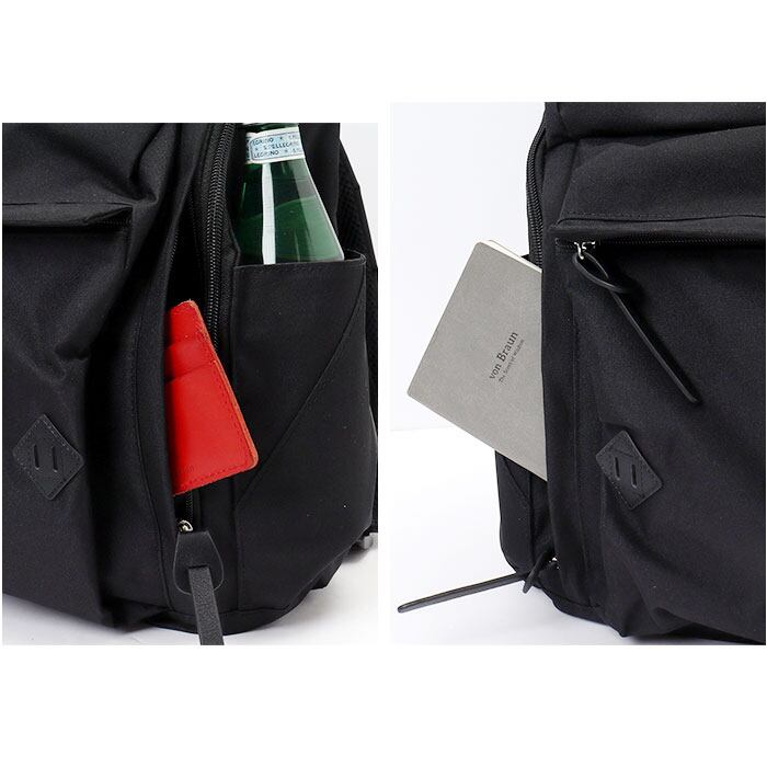 ・前面:ファスナーポケット×1(内側にオープンポケット×1)、縦型ファスナーポケット×2