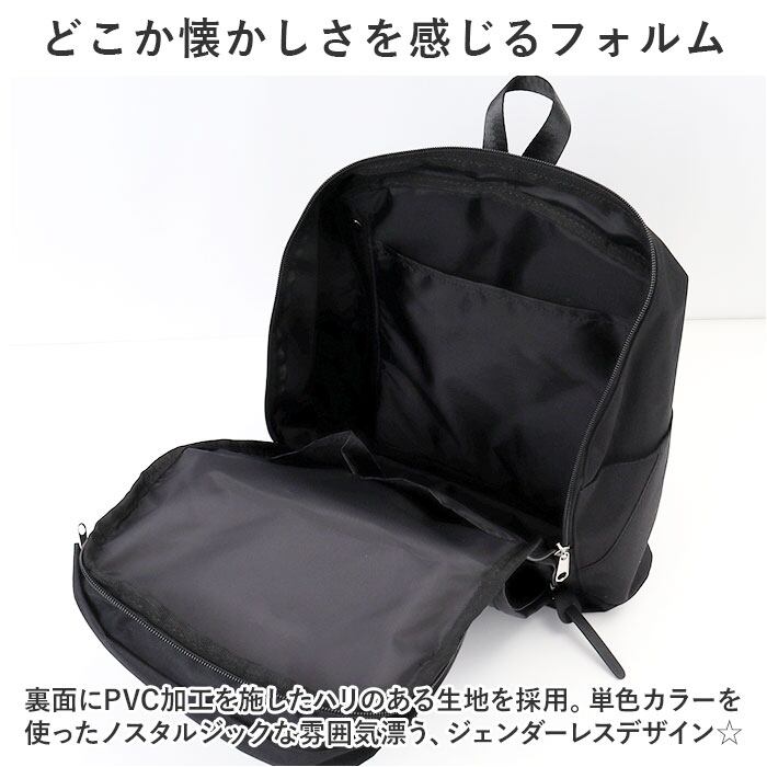 ・裏面にPVC加工を施したハリのある生地を採用。単色カラーを使ったノスタルジックな雰囲気漂う、ジェンダーレスデザイン☆