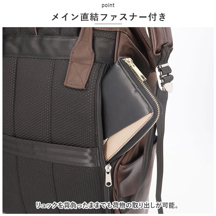 ・リュックを背負ったままでも荷物の取り出しが可能。