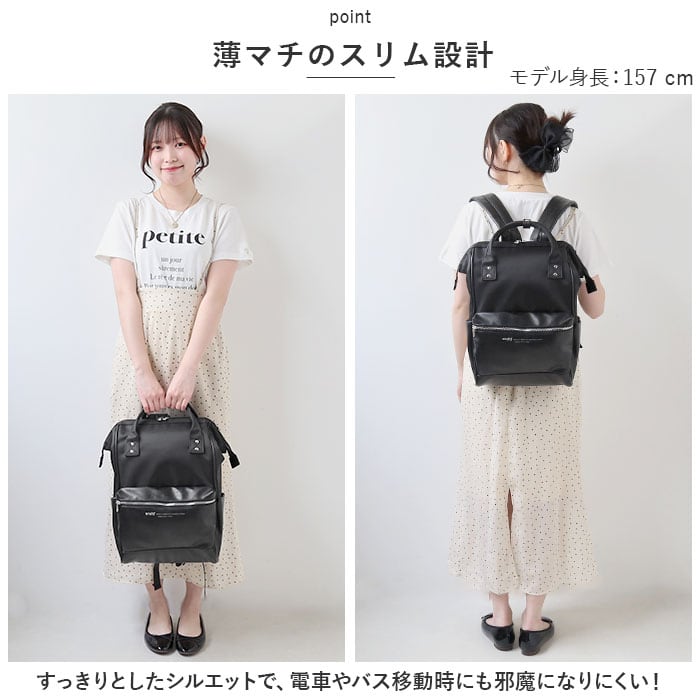 ・すっきりとしたシルエットで、電車やバス移動時にも邪魔になりにくい!
