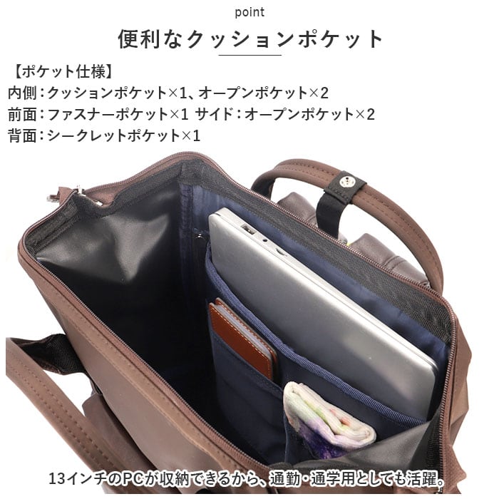 13インチのPCが収納できるから、通勤・通学用としても活躍。