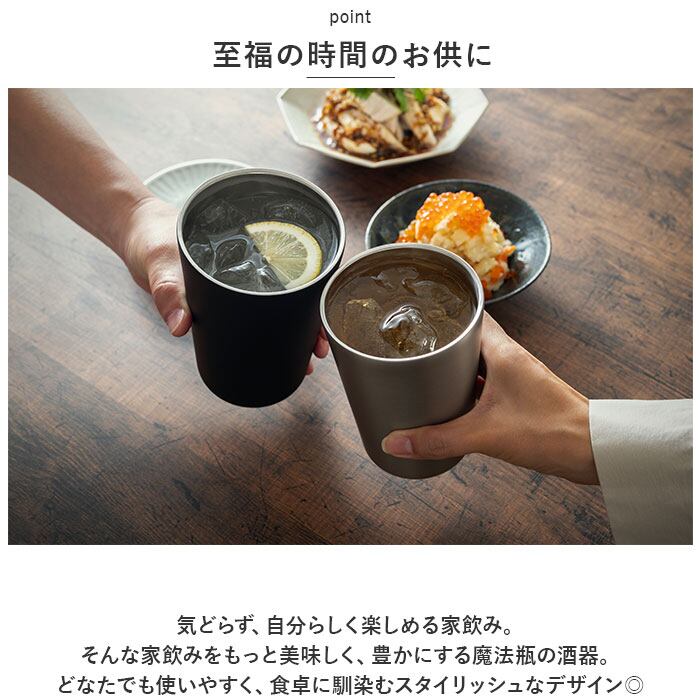 ・気どらず、自分らしく楽しめる家飲み。そんな家飲みをもっと美味しく、豊かにする魔法瓶の酒器。どなたでも使いやすく、食卓に馴染むスタイリッシュなデザイン◎
