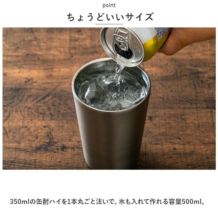 ・350mlの缶酎ハイを1本丸ごと注いで、氷も入れて作れる容量500ml。