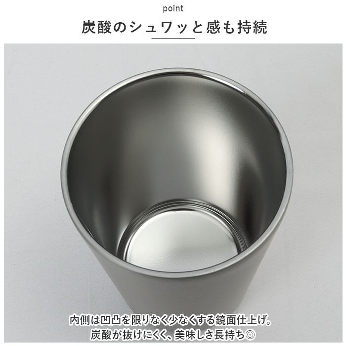 ・内側は凹凸を限りなく少なくする鏡面仕上げ。炭酸が抜けにくく、美味しさ長持ち◎