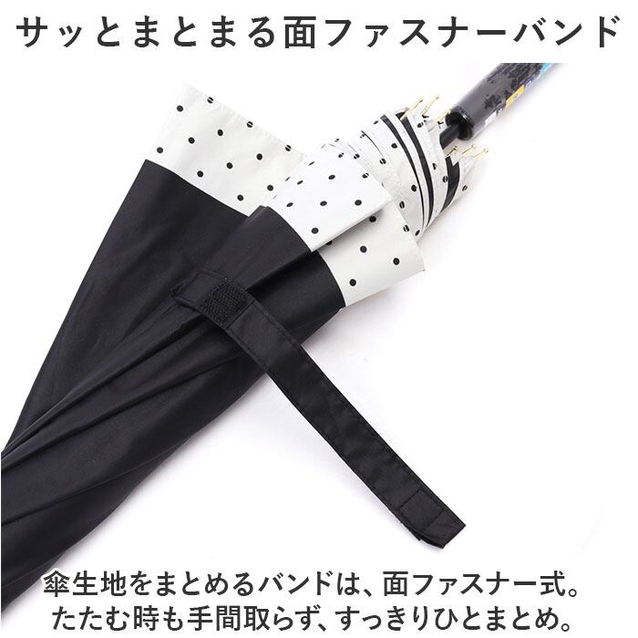 ・傘生地をまとめるバンドは、面ファスナー式。たたむ時も手間取らず、すっきりひとまとめ。