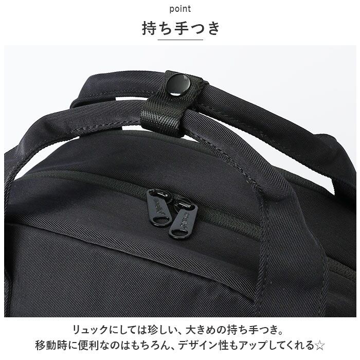 ・リュックにしては珍しい、大きめの持ち手つき。移動時に便利なのはもちろん、デザイン性もアップしてくれる☆