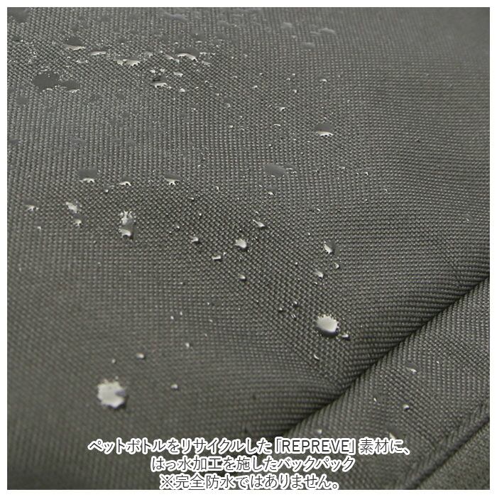 ・ペットボトルをリサイクルした「REPREVE」素材に、はっ水加工を施したバックパック。急な雨でも安心。(※完全防水ではありません。)