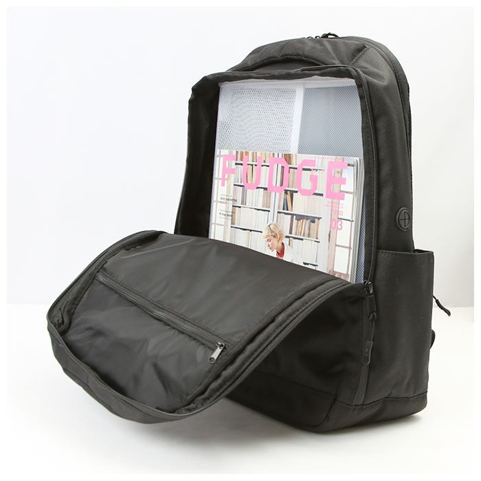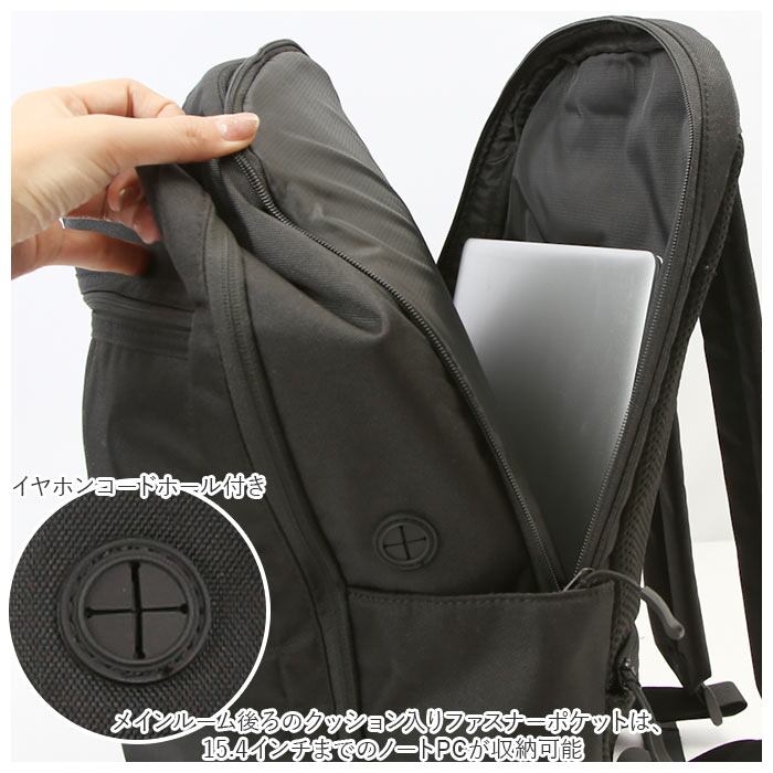 ・メインルーム後ろのクッション入りファスナーポケットは、15.4インチまでのノートPCが収納可能。