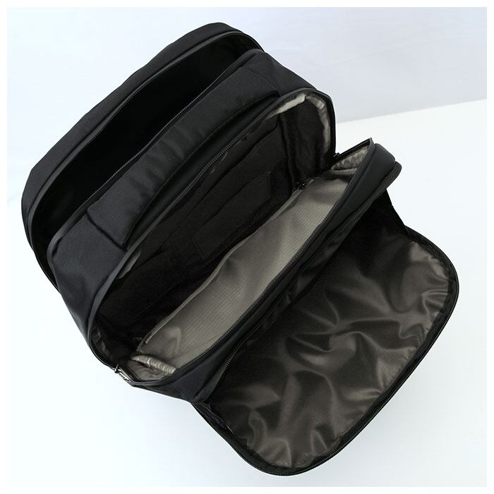・はっ水性と程よい光沢感のあるナイロン生地を使用した質感のシンプルデザイン♪10ポケット付きでA4OKな多機能リュック。
