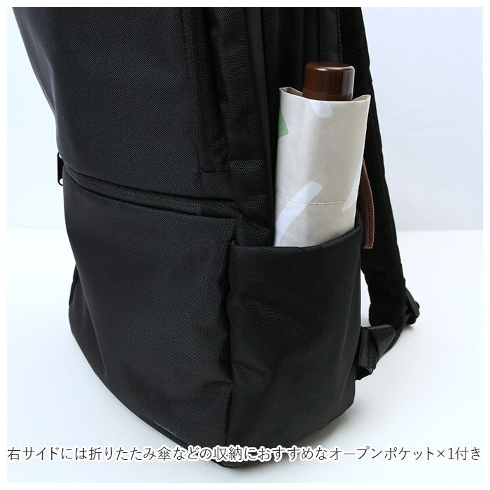 ・右サイドには折りたたみ傘などの収納におすすめなオープンポケット×1付き。