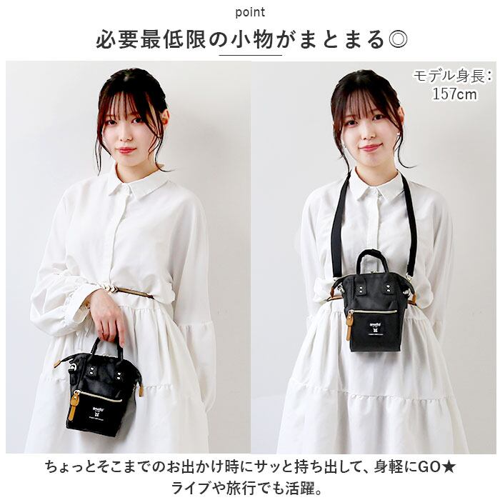 ・長さ調節可能なショルダーベルト付きで、斜め掛けや首掛けなど自在にアレンジ。ショルダーベルトを取り外して手持ちもOK。