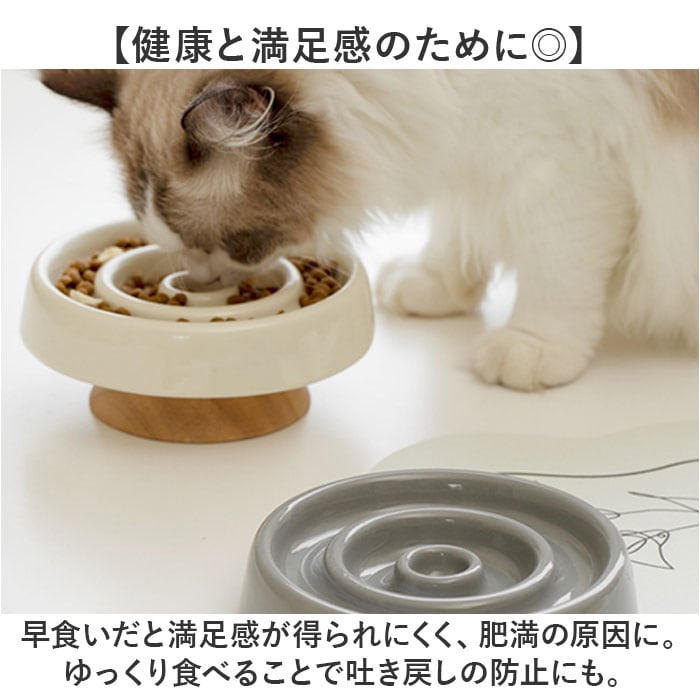 ・グルグルうずまきにフードが入り、あえて食べにくくすることで、フードの一気食べを防止!