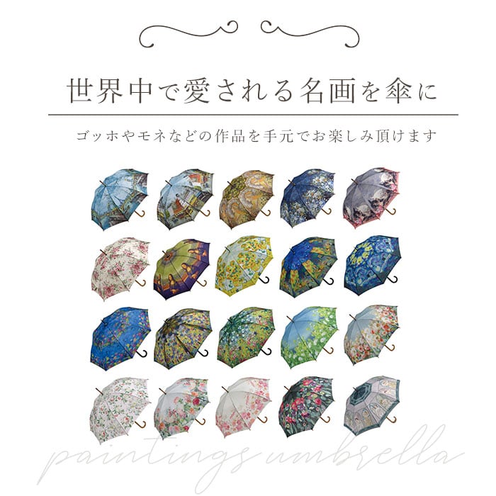 ・世界的に有名な名画を、傘生地の全面にプリント。お気に入りの作品がきっと見つかる、豊富なバリエーション。
