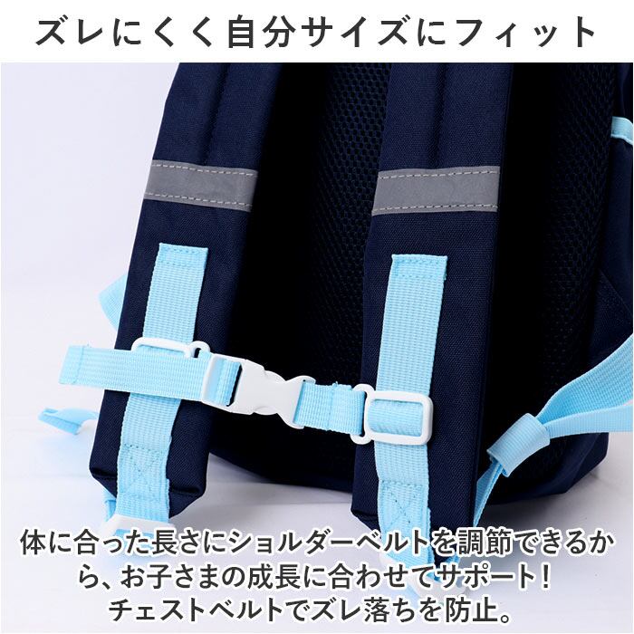 ・体に合った長さにショルダーベルトを調節できるから、お子さまの成長に合わせてサポート!チェストベルトでズレ落ちを防止。