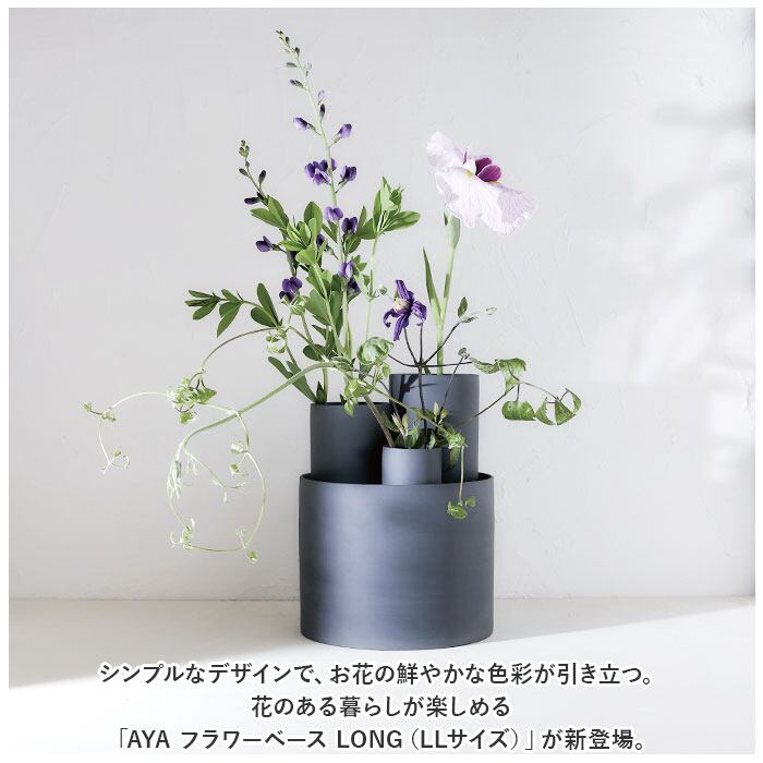 ・シンプルなデザインで、お花の鮮やかな色彩が引き立つ。花のある暮らしが楽しめる「AYA フラワーベース LONG(LLサイズ)」が新登場。