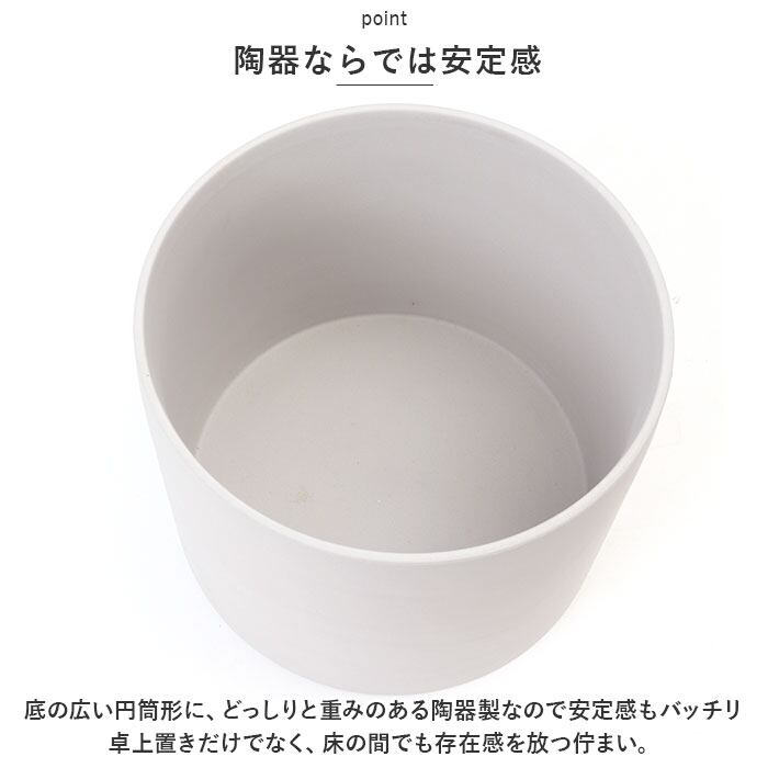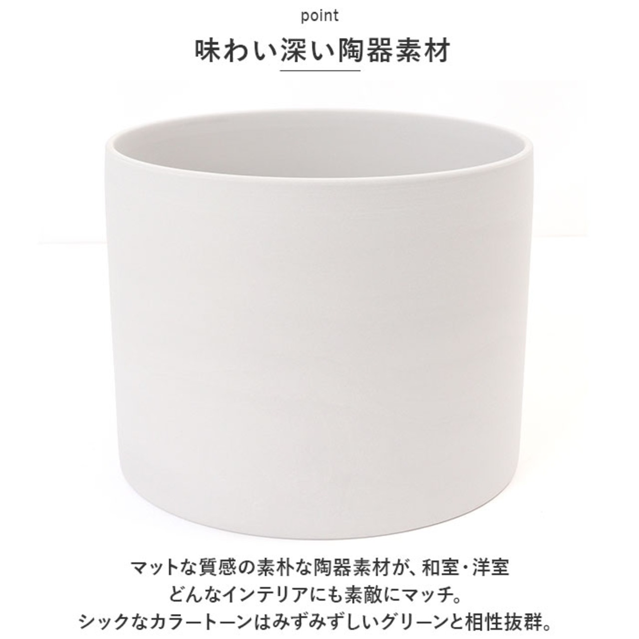 ・マットな質感の素朴な陶器素材が、和室・洋室どんなインテリアにも素敵にマッチ。シックなカラートーンはみずみずしいグリーンと相性抜群。