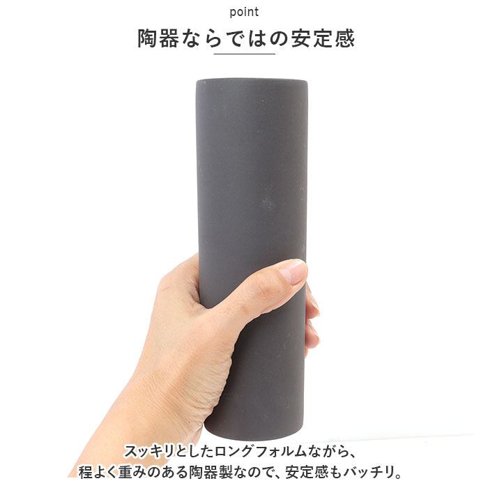 ・スッキリとしたロングフォルムながら、程よく重みのある陶器製なので、安定感もバッチリ。卓上置きだけでなく、床の間でも存在感を放つ佇まい。