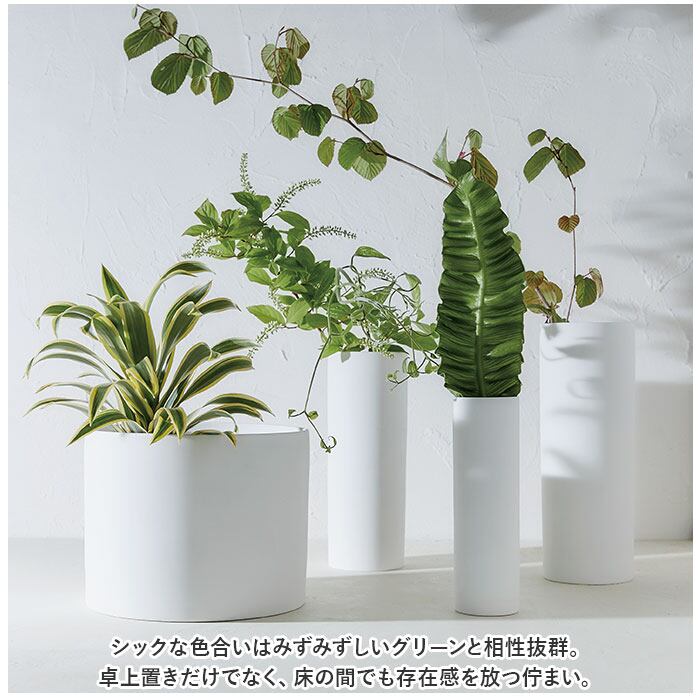 ・マットな質感の素朴な陶器素材が、和室・洋室どんなインテリアにも素敵にマッチ。シックな色合いはみずみずしいグリーンと相性抜群。