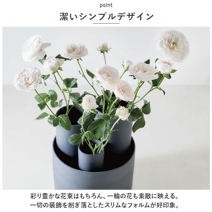 ・彩り豊かな花束はもちろん、一輪の花も素敵に映える。一切の装飾を削ぎ落としたスリムなフォルムが好印象。
