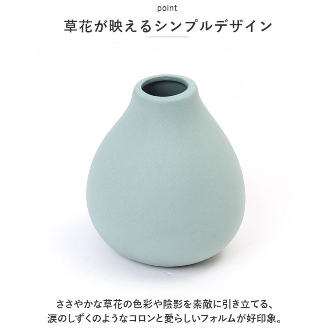 ・ささやかな草花の色彩や陰影を素敵に引き立てる、涙のしずくのようなコロンと愛らしいフォルムが好印象。