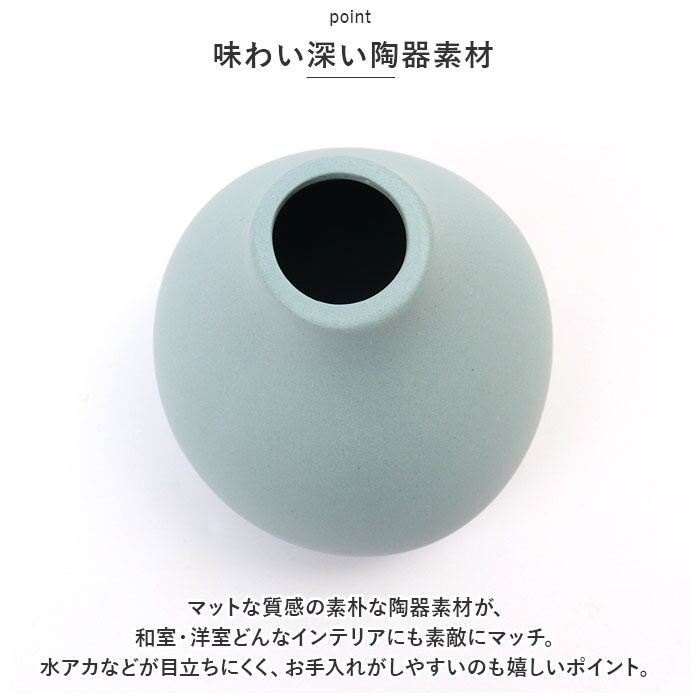 ・マットな質感の素朴な陶器素材が、和室・洋室どんなインテリアにも素敵にマッチ。水アカなどが目立ちにくく、お手入れがしやすいのも嬉しいポイント。