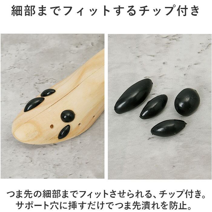 ・つま先の細部までフィットさせられる、チップ付き。サポート穴に挿すだけでつま先潰れを防止。